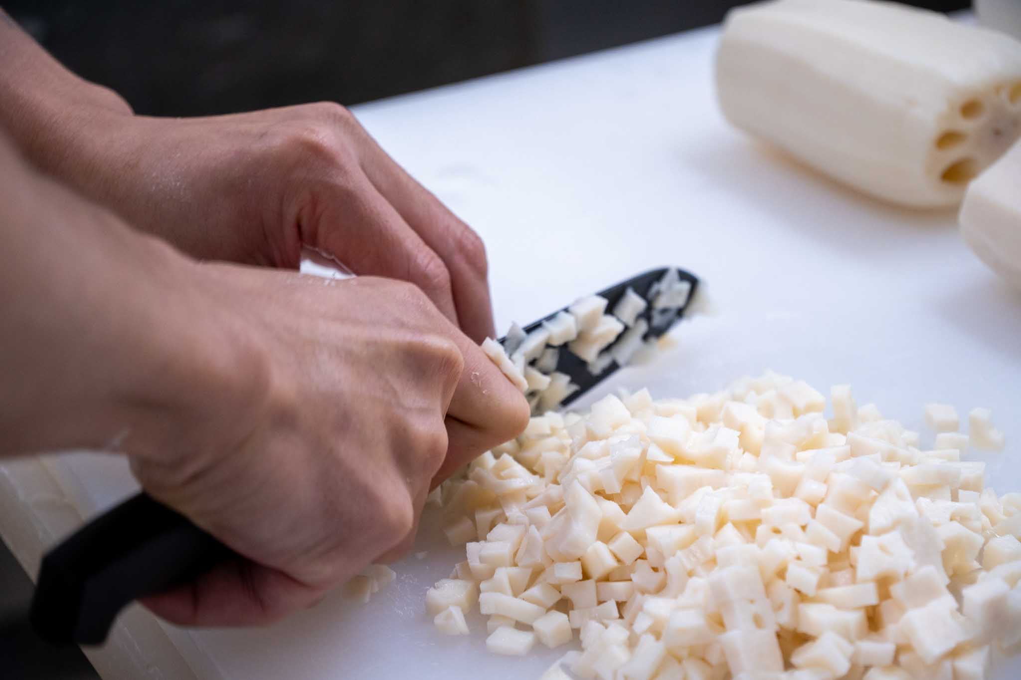 丸八蒲鉾は、食材選びから製造まで妥協を許さず、上質な蒲鉾づくりに取り組んでいます。 原材料には、神戸中央市場で厳選した鱧とイトヨリダイを使用し、魚本来の旨味を最大限に引き出しています。 製法は、生魚を捌く工程から始まる昔ながらの手法を継承し、「本物」の味を届けるための手間を惜しみません。 こうして生まれる蒲鉾は、ふわふわとした食感と凝縮された旨味が特徴。良質なすり身を使うことで、白く艶のある美しい製品に仕上がります。 私たちの仕事は、食べる人に感動を届ける“体験”を形にすることです。
